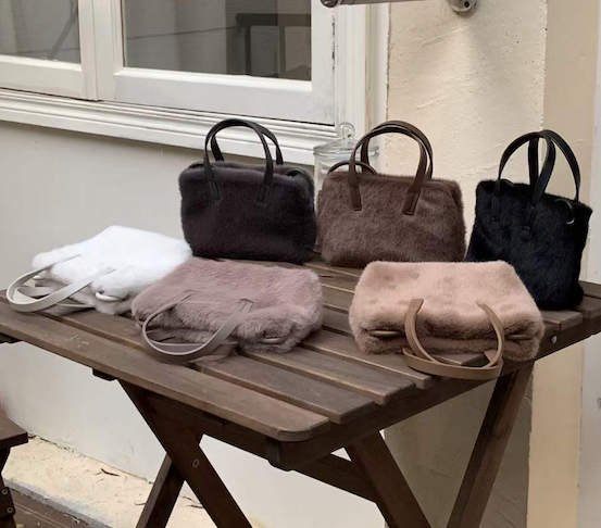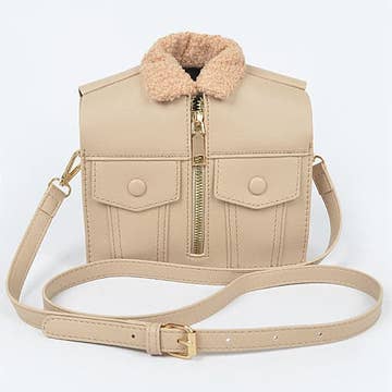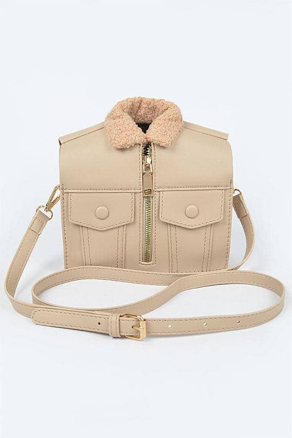 Wholesale MDTAF Italian Taupe Leather Crossbody Bag Matching Real Fur