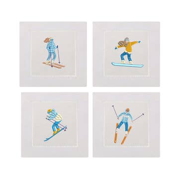 Skiers Cocktail Napkins | Mixed Set of 4