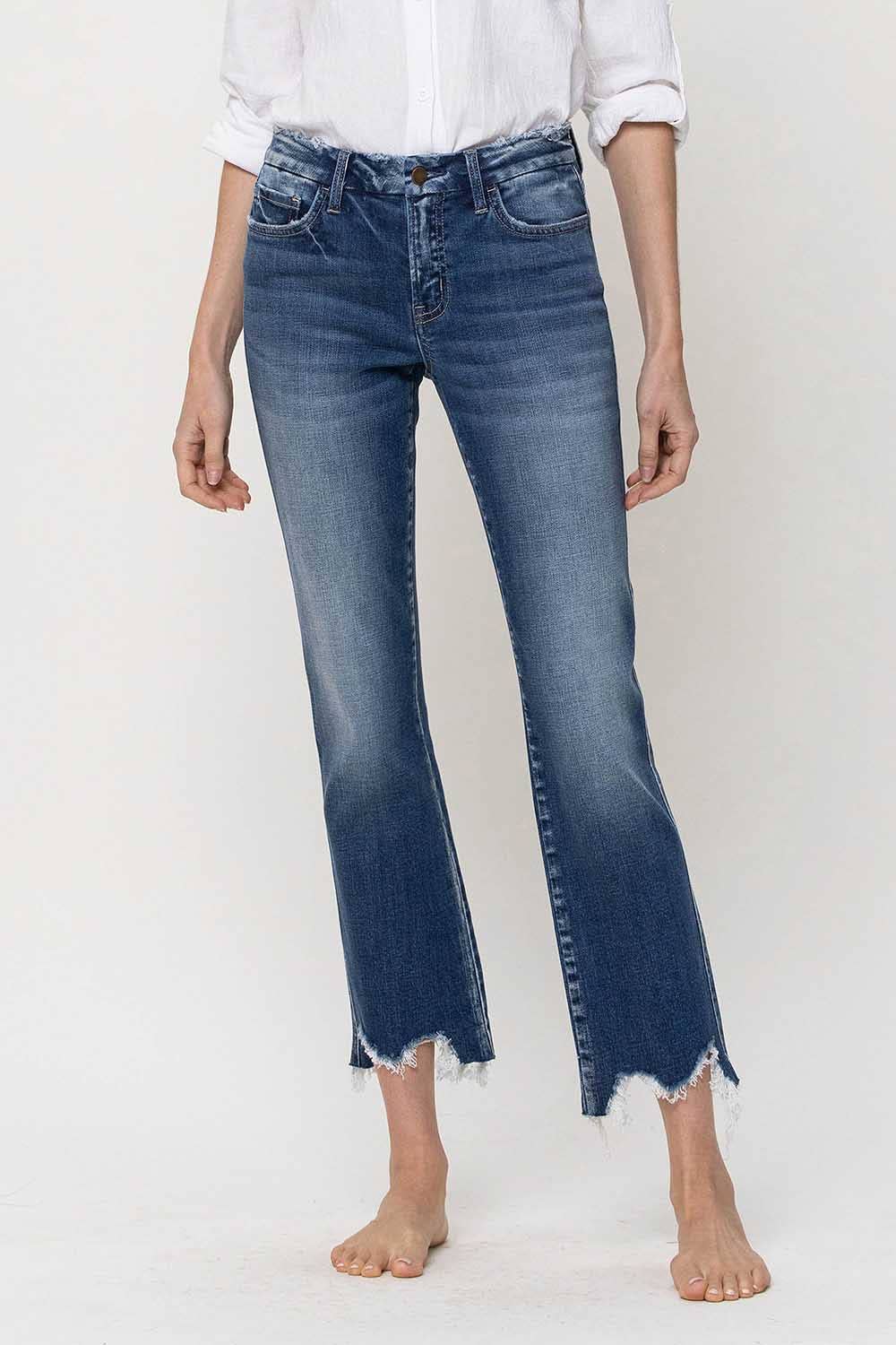 Great quality, good stretch, distressed but not too much. Customers like the full length. And being able to size down.