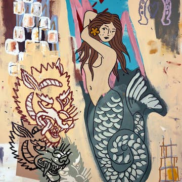 A beautiful mermaid pug sits atop a rock. All art prints are high quality reproductions of Gianna Pergamo's mixed media pieces. She creates them using collage from vintage imagery and acrylic paint on canvas. -8x10" print, standard/easy size to frame or mat -Signed on the front -Professionally printed on thick FSC certified card stock -Packed with backing board in plastic sleeve sealed with flap -Artist biography card included Artist bio card in back of sleeve reads: Pergamo Paper Goods eco friendly family friendly gay friendly Gianna Pergamo is a mixed media illustrator and RISD alumna from Brooklyn, NY, now working in St. Petersburg, FL. Creating original pieces from new and old materials, Gianna combines the dynamics of collage and painting into delightful and sometimes peculiar pieces of art. She is inspired by animals, nature, and textile patterns.