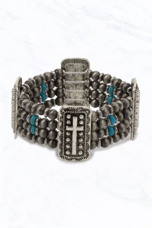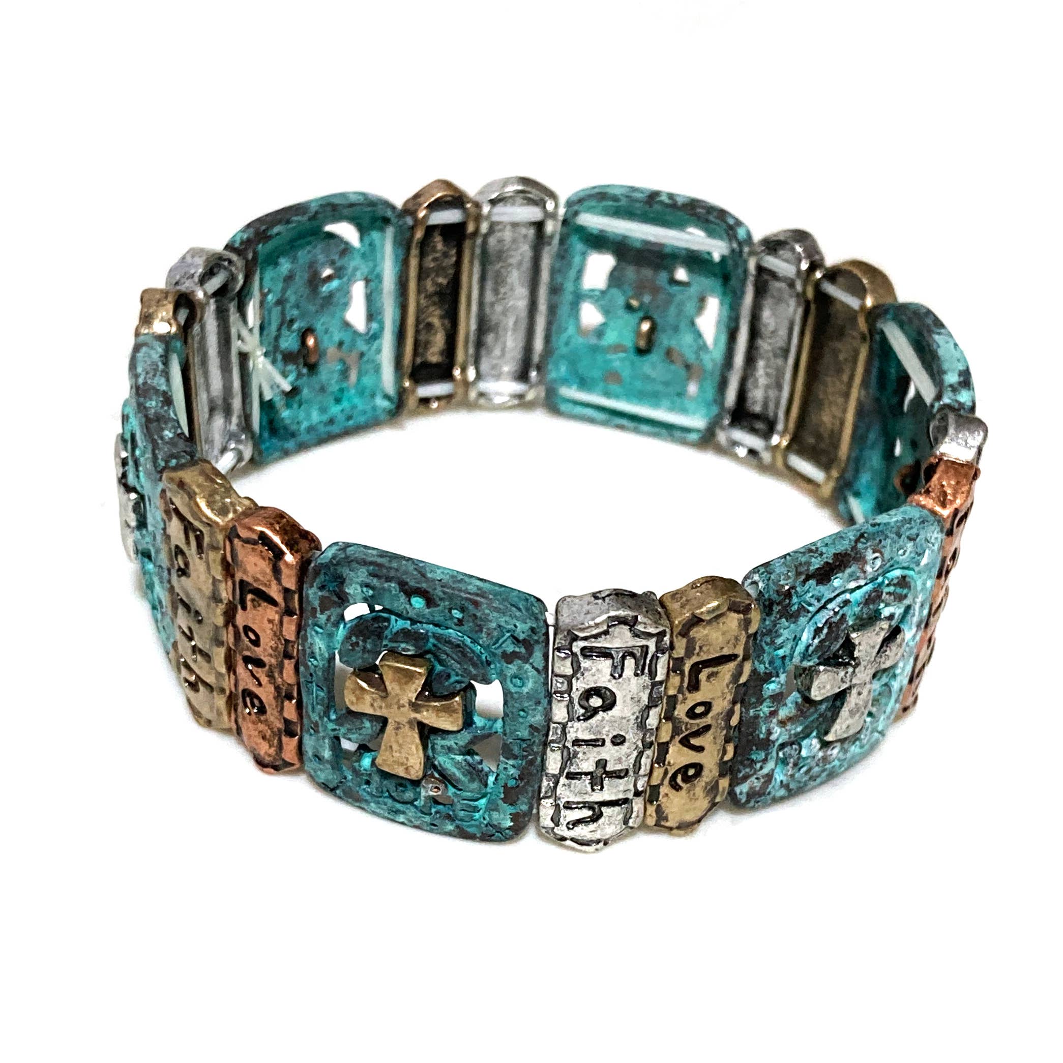 No reviews for Antique Patina Mixed Metals Embossed Stretch Bracelet yet.