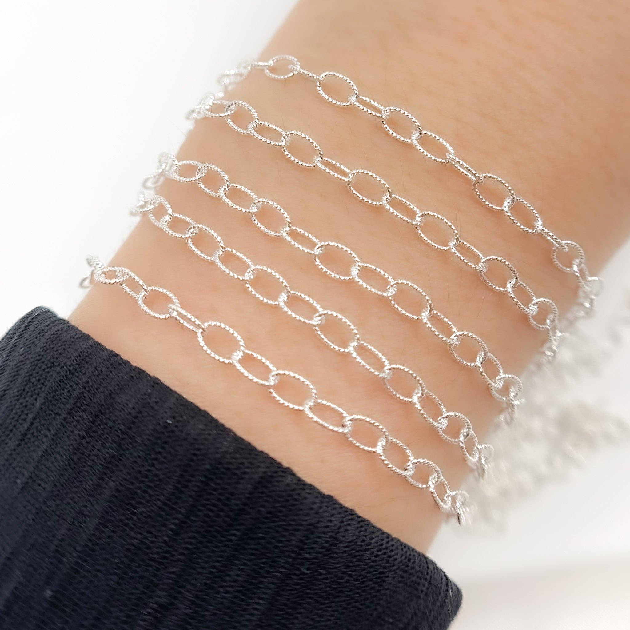Sterling Silver Curb Chain. Link Size: 4mm. Sold by Foot.