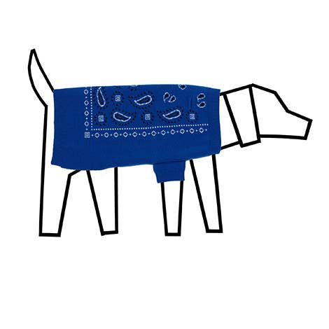 Our knit bandana print jacquard scarf will add style to any pup's wardrobe. Wear it with a coordinating bandana print sweater to look extra fashionable. Available in 3 sizes and 3 color ways. 100% Merino Wool Dry clean or hand wash cold and lay flat to dry Triangle Shape Small - up to 13" neck Medium - up to 18" neck Large - up to 24" neck