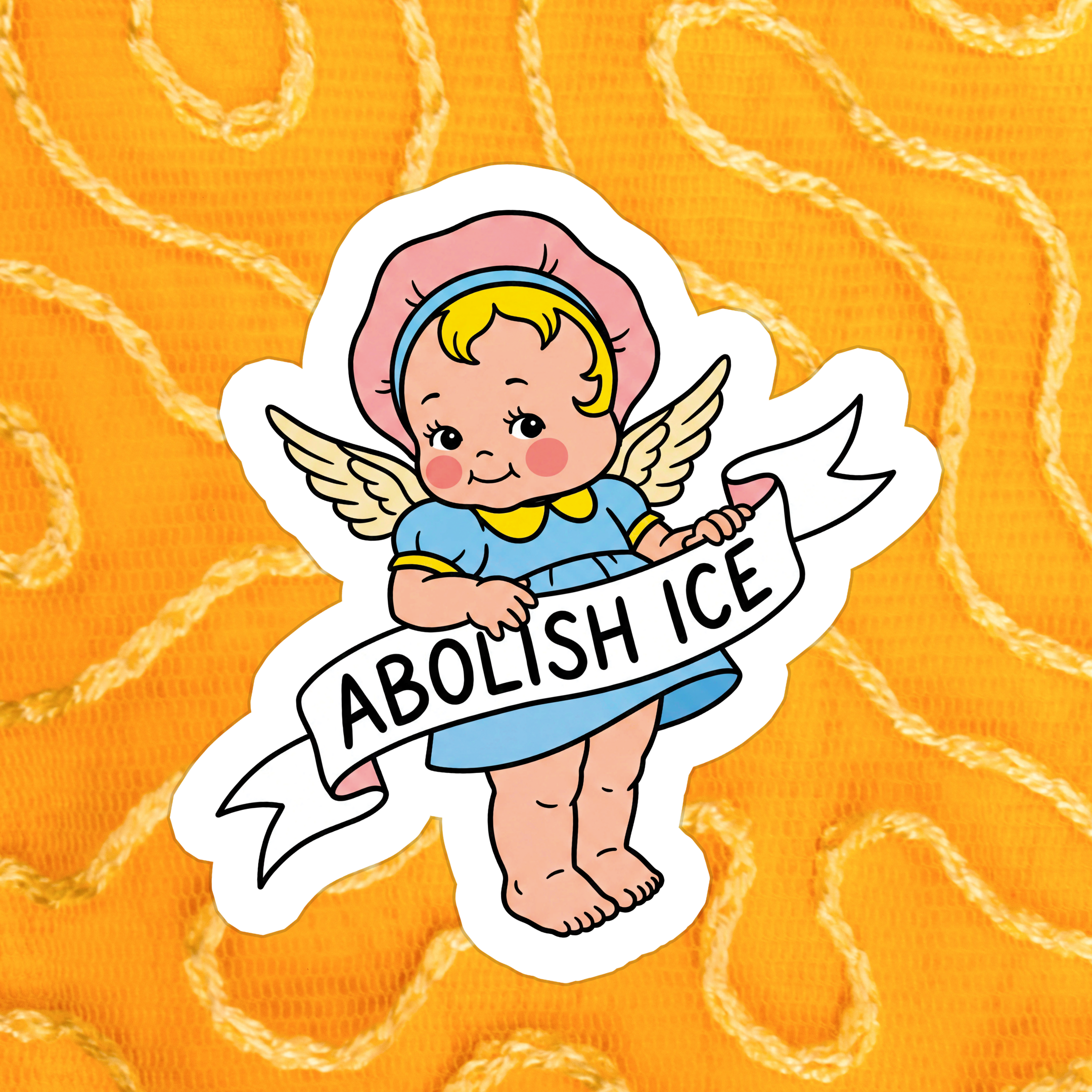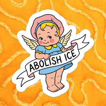 Reads "our community is a quilt, we need every piece" and features a mother and daughter holding up a quilt saying "abolish ICE." Quilts have a long history of being used for protest & social movements in the USA, from the slavery abolition movement to the AIDS quilt. Each piece of a quilt is exactly where it belongs regardless of where the fabric is from or what it looks like, and each piece is necessary for the quilt to stay together, warm and safe and reassuring to all who need it, much like our communities at their best. Bigger than most of my other stickers, and made of hardy weatherproof vinyl. Good for covering up dark-sided stuff you may see in the world! Also available in a bulk listing at a discounted rate.