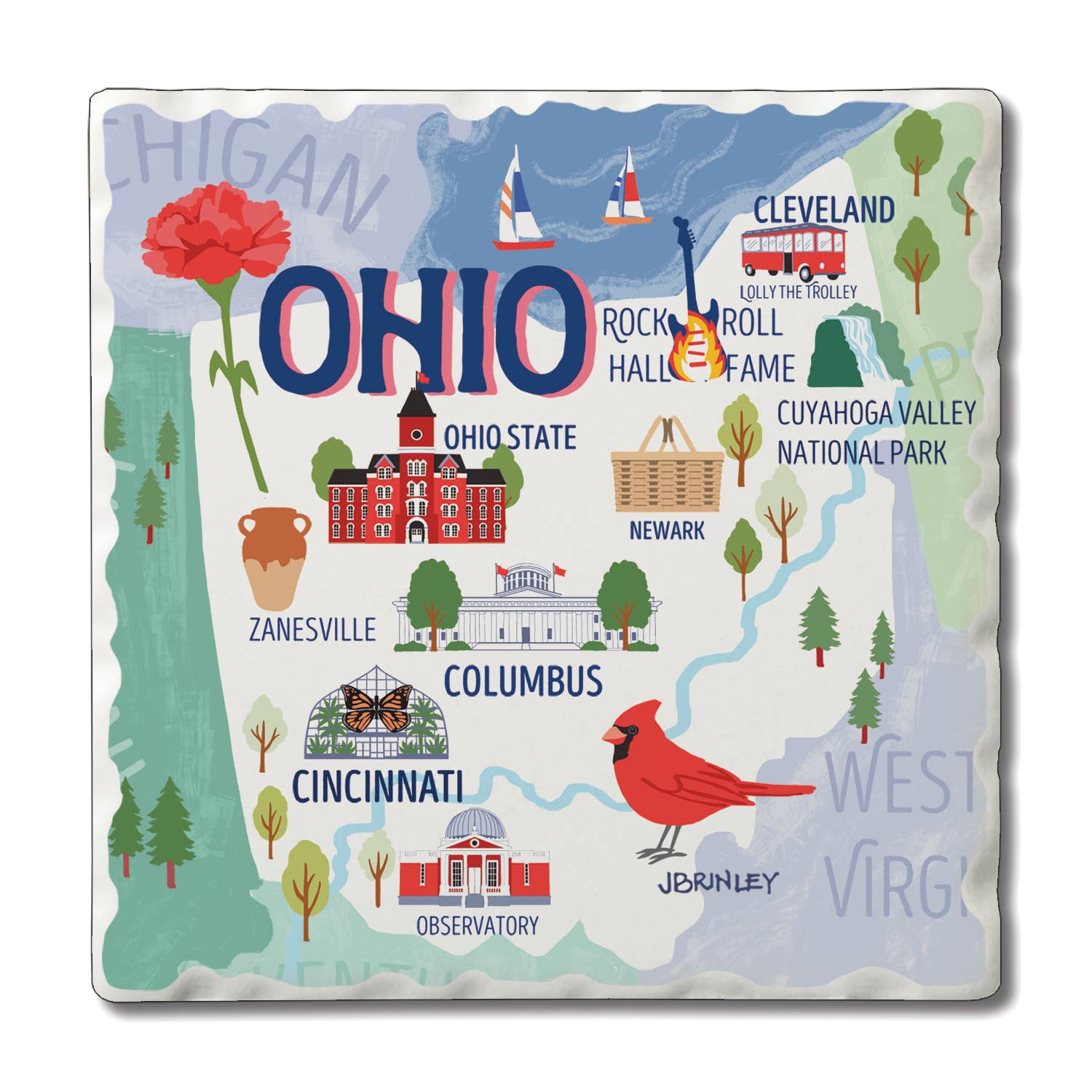 Our coaster tiles are made from a proprietary ceramic blend which means they will absorb the condensation right off your glassware - no more water rings on your tables! 4" x 4" absorbent ceramic coaster tile. Versatile cork pad on bottom. Durable UV printed graphics. Natural look tumbled edges. Marbled background. BONUS: Sets of 4 comes with gift box.