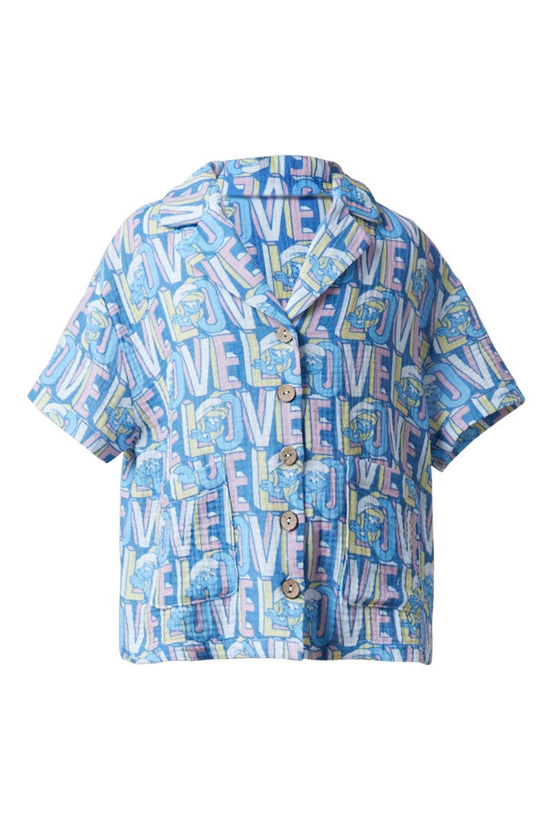 Womens Bow Print Contrast Puff Sleeve Mix Media Top
