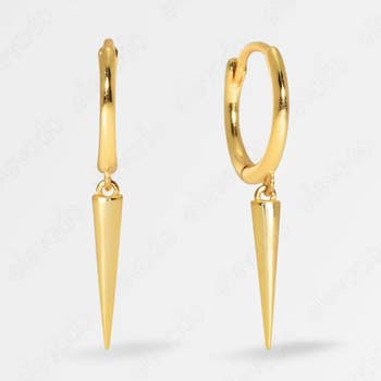 Edgy and sleek. These hoops have an interchangeable spike you may remove it and wear alone. * 18k gold plated over stainless steel * Hypoallergenic * Water & Tarnish Resistant