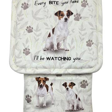 Pot holder size 7” x 9” / 100% cotton lining / non-slip grip / 500 heat resistant silicone. Oven mitt size 7” x 13” / 100% cotton lining.