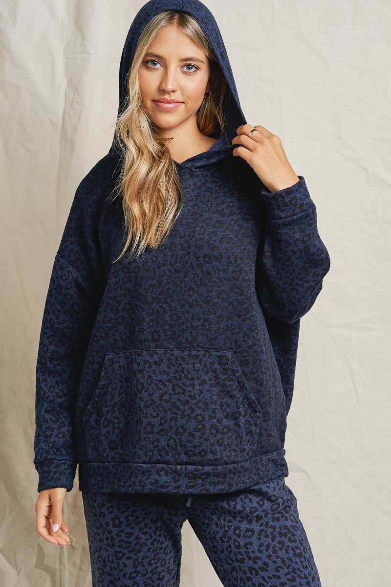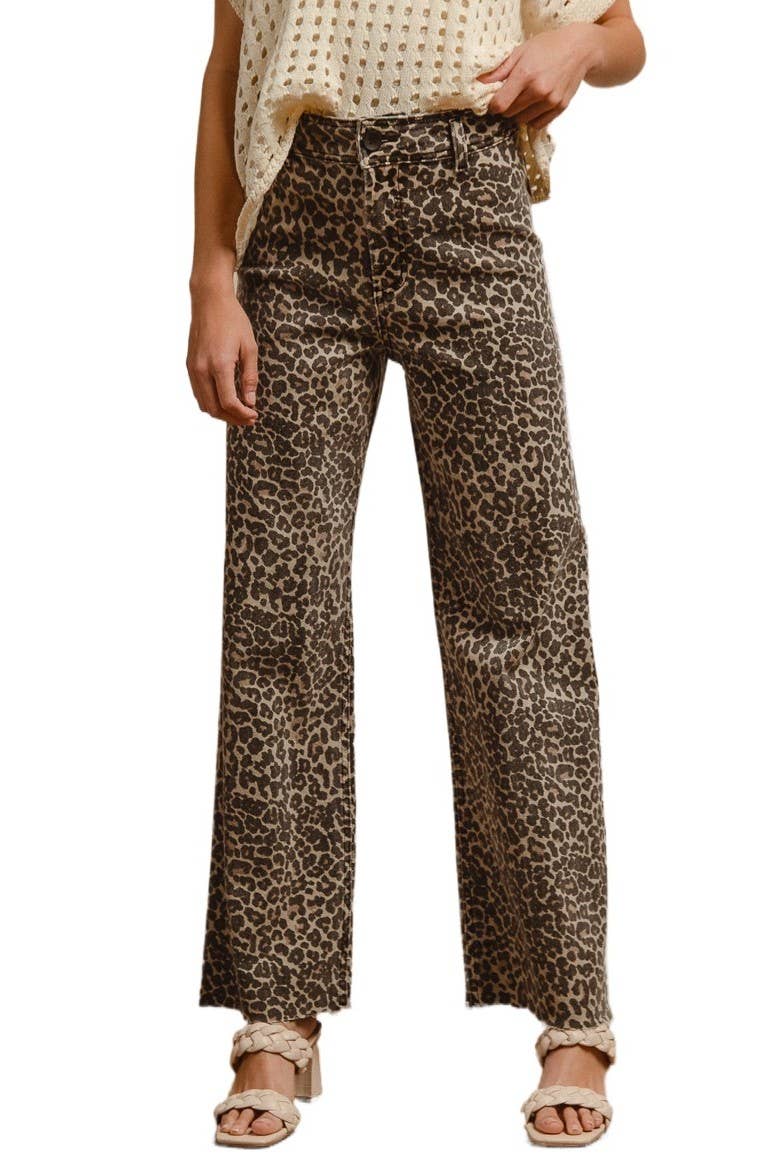 **NOT SOLD AS SETS** BOTTOMS ONLY A garment dyed leopard print jogger featuring a drawstring and elasticized cuffs. *50% Polyester 50% Cotton *Made in USA *Hand wash only *Model is wearing a size Small *Measurements provided from a size Small * Waist: 13.5 in Total Length:37 in Rise: 11