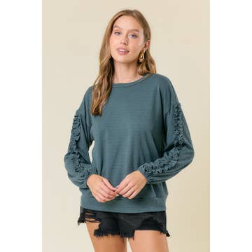 WHOLESALE RUFFLED LONG SLEEVE TOP - T5689