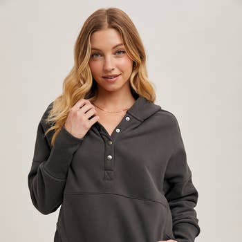 Wholesale Long Sleeve Inner Brush Oversized Hoodie Tunic Top