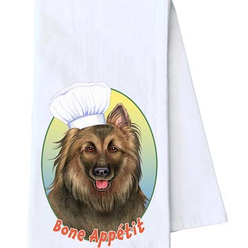 These 29"" x 29"" flour sack towels feature your favorite breeds. They are proudly made in the USA and feature the artwork of renowned artist Tamara Burnett. Bone Appetit !!! Recommended washing instructions: machine wash, air fluff to dry. Material : Cotton.