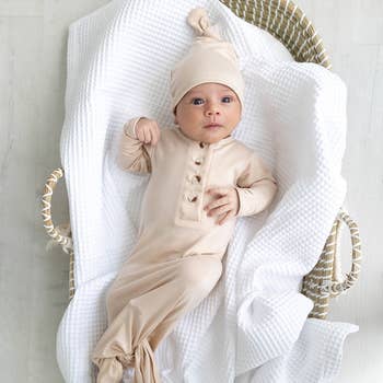 The sweetest newborn gown and matching beanie set! Perfect for baby shower gifts, newborn photos, and coming home outfits. Fabric ties at the bottom for easy diaper changes. For the hard diaper changes (those newborn blowouts are no joke!), the foldover lap neck lets you pull the gown down to remove, instead of pulling over baby's head. Tagless for added comfort. Made from our premium SoftSnooze™ cotton modal blend, these jammies are super cozy and soft. The snuggly modal fabric is pill-resistant and great for embroidery or personalization! The classic gingham is bright and sweet, perfect for the whole family. Pairs well with White, Blue Breeze, Pink Gingham. Care Instructions: Machine wash cold; only non-chlorine bleach when needed; tumble dry low // Modal is a delicate fabric. To prevent damage and to extend the life of the garment, use laundry bag in washing machine and dryer. Fabric Content: 54% Cotton, 39% Modal, 7% Spandex Reference Code: U0384