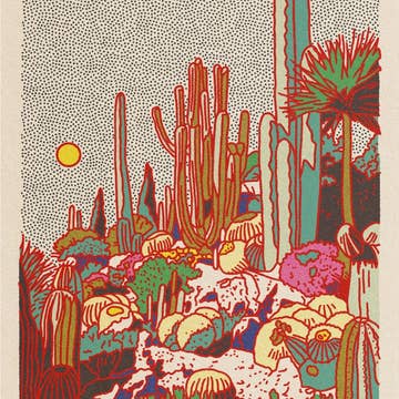 This is a digital art print inspired by the beautiful colors of the desert night on a full moon.