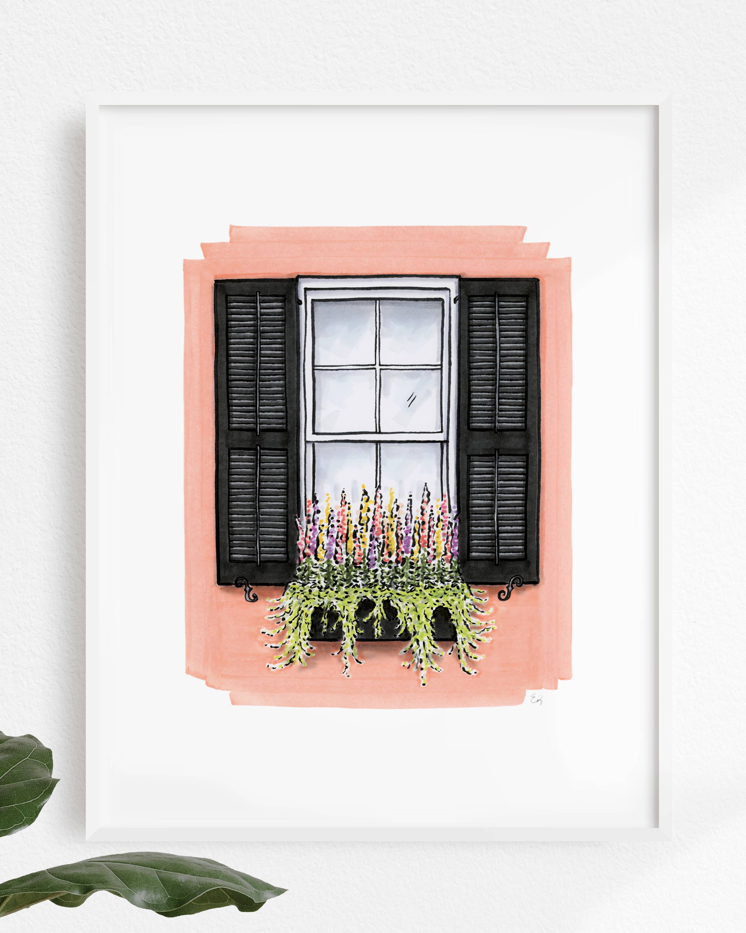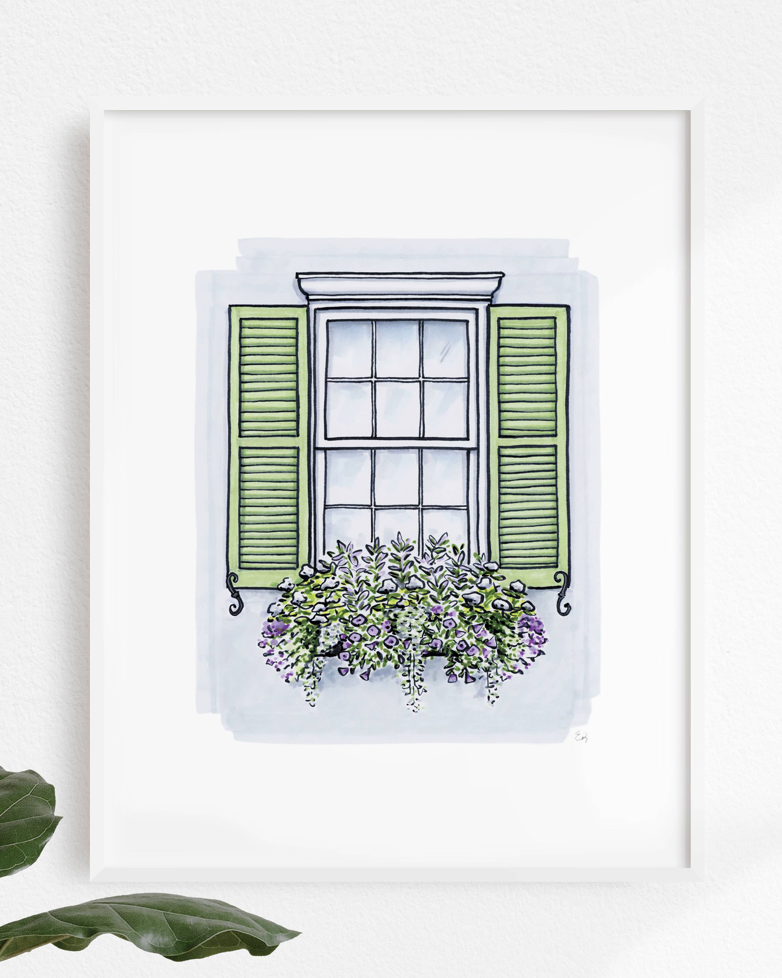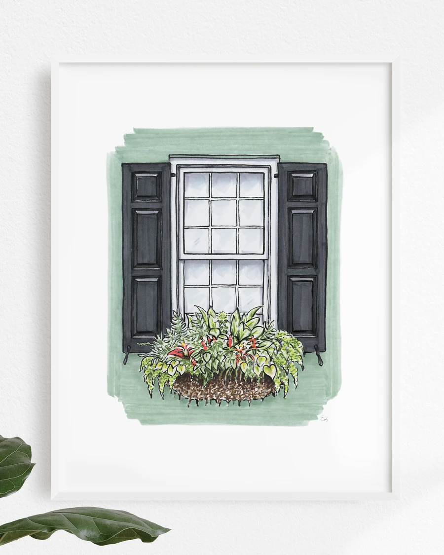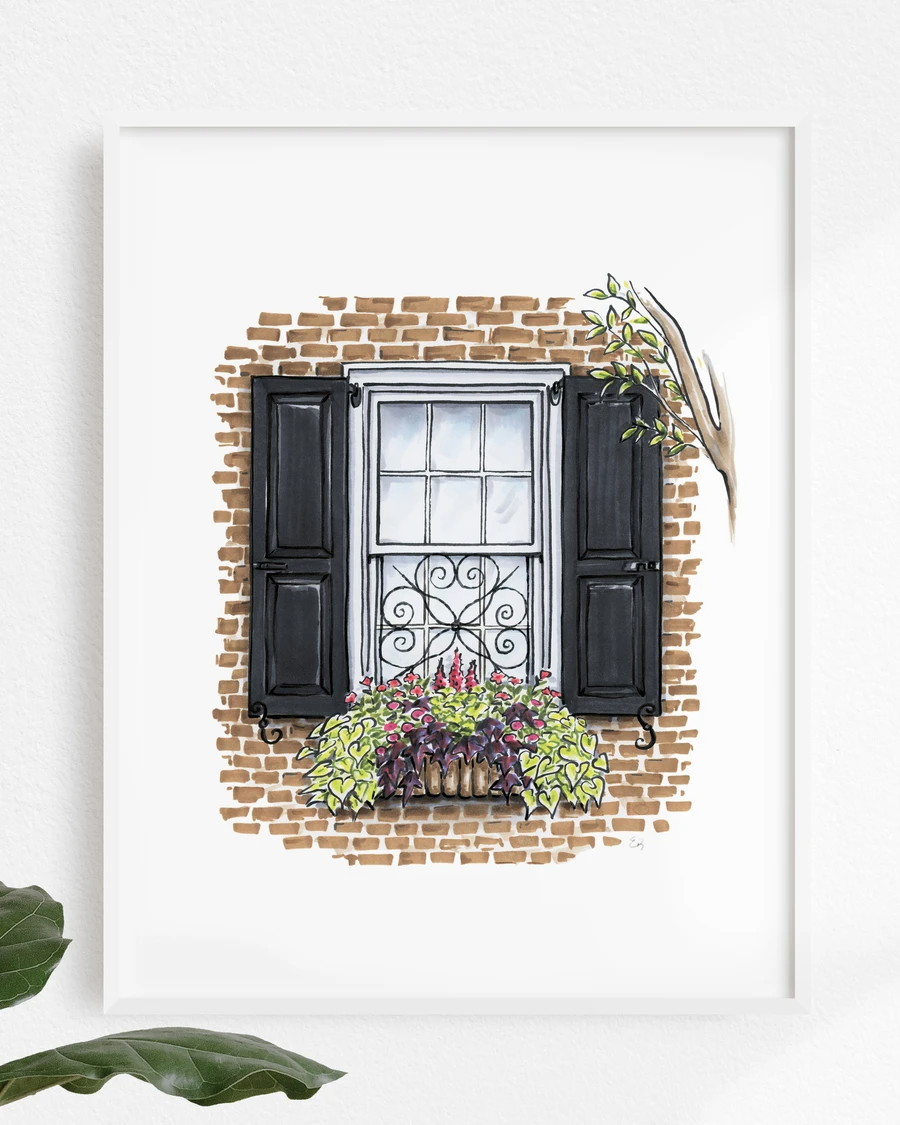 Print features a hand-drawn sketch of a Charleston flower box. Each print is hand signed. Details: -11"" x 14"" -archival ink -paper: matte, premium paper, 50-lb. Weight, long-term lightfastness -does not include frame -packaged in clear protective sleeve with chipboard backing. *A portion of the proceeds benefit Charleston's homeless shelter One80 place. Size: 11x14.