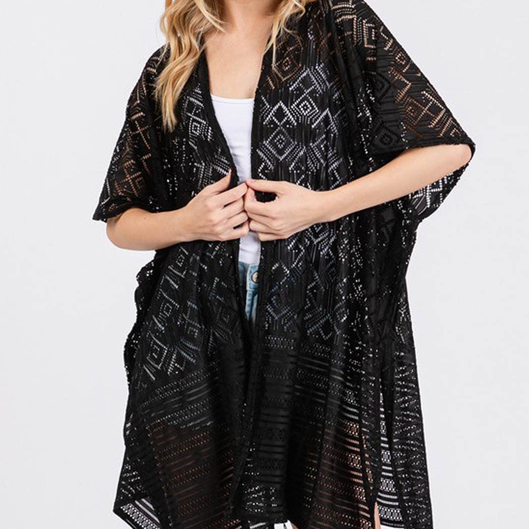 Wholesale Ultimate Beachwear: Boho Crochet Kimono with Lace Details ๐