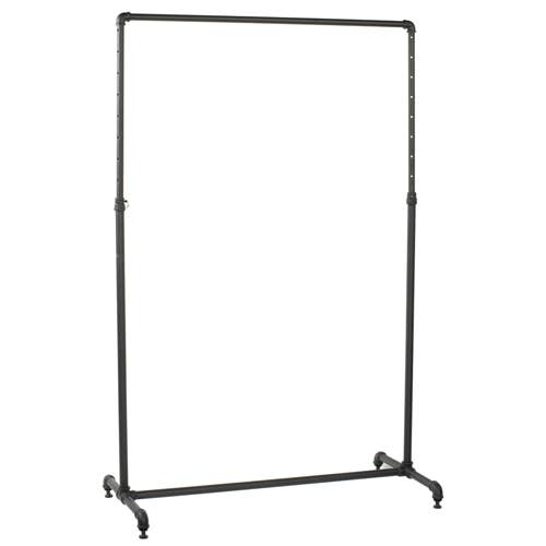 This modern mobile 2-foot Wide single-rail ballet bar rack works perfectly for any store. The ballet bar style rack features an adjustable height (3-inch increments) hang bar with two three-inch accessory faceouts, four removable casters, and a bottom display merchandiser shelf to showcase accessories and more. This is a convenient ballet bar-style clothing display rack for apparel and garments in any desired location. Also great as a coat rack stand for any business or office. The rack is 24 x 18 x 48-72.