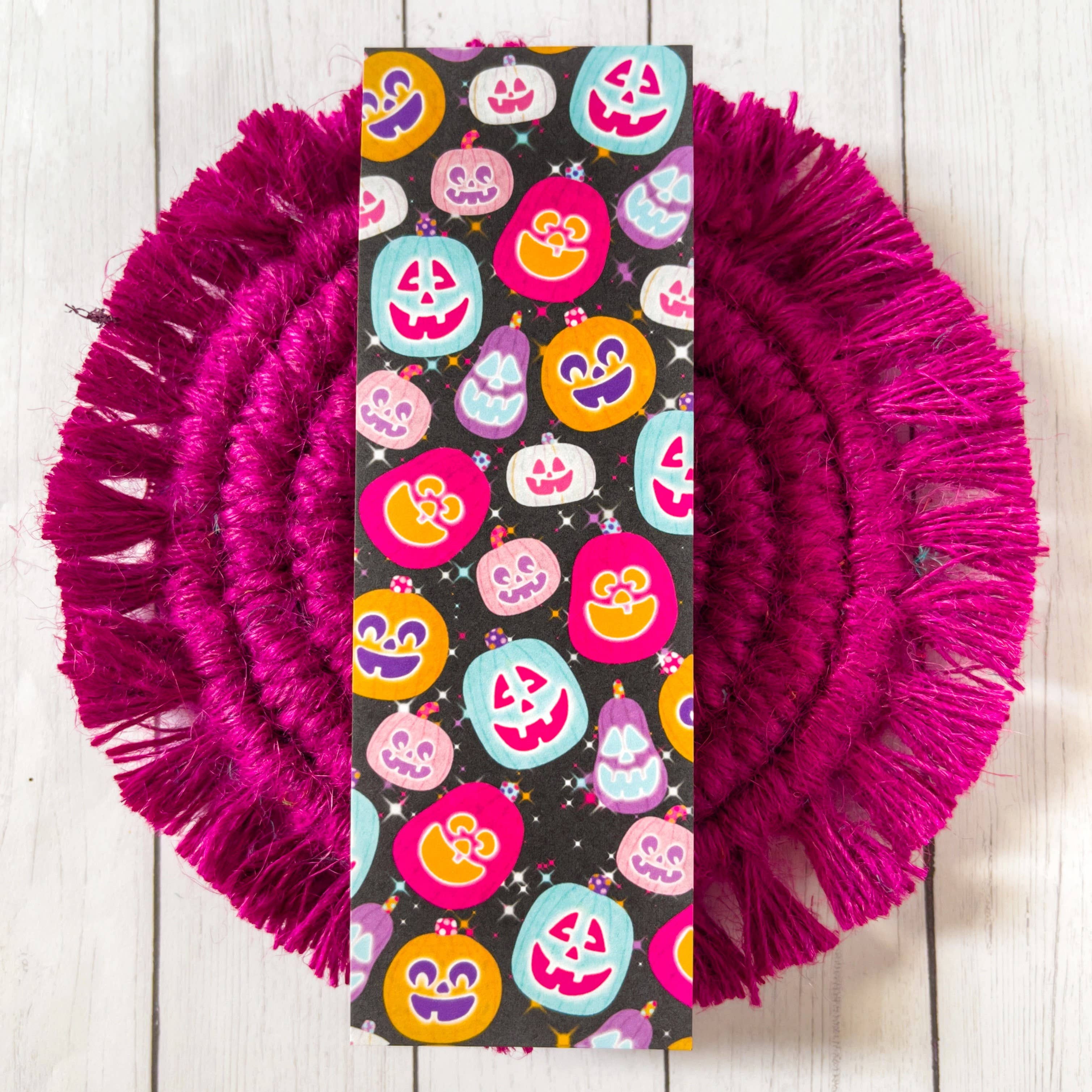 Come further into the world of Sweetie Bear, where things aren't always as they seem - they're much sweeter! Halloween is one of the biggest holidays that takes place in Sweetie Bear's world (what more would you expect from a place where candy grows as freely as flowers?) Sweetie and her friends are ready for a night of fun! These bookmarks are fun, playful, and the perfect companion for your favorite horror novel or that Halloween-themed book you have been meaning to start. Designed to add a touch of seasonal charm to your reading routine, they bring a lighthearted twist to spooky stories. While kid-friendly in design, these bookmarks are great for readers of any age who enjoy festive accessories, playful silly characters, and a little extra personality tucked between the pages of a good book. Each bookmark is made using sturdy 180gsm bright white matte cardstock and finished with a heat-activated laminate for added durability and a smooth, polished feel. Measuring 2 x 7 inches, they are hand printed, laminated, and cut in-house with care and attention to detail. Designed to last and made with love, this bookmark is equal parts functional and fun