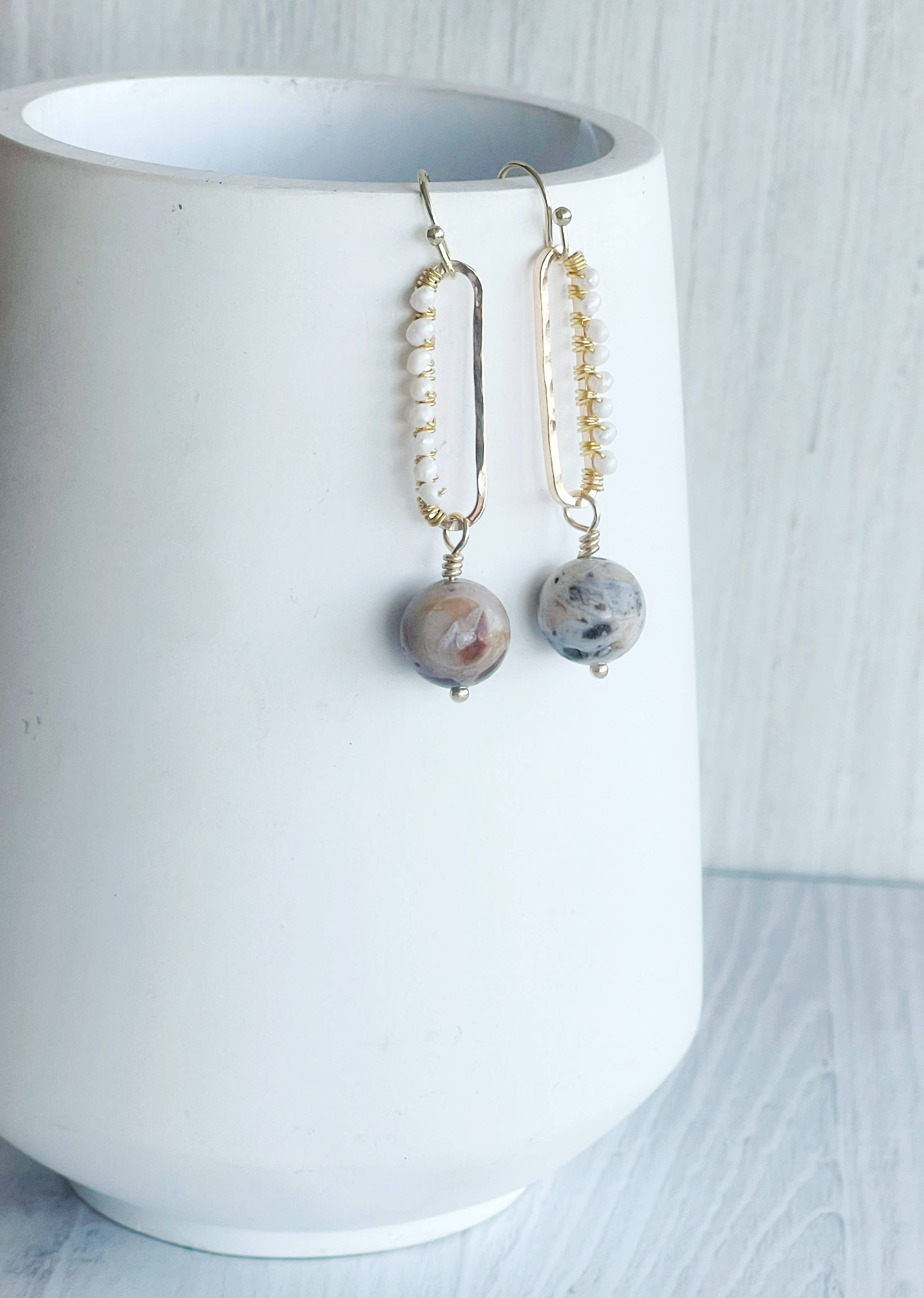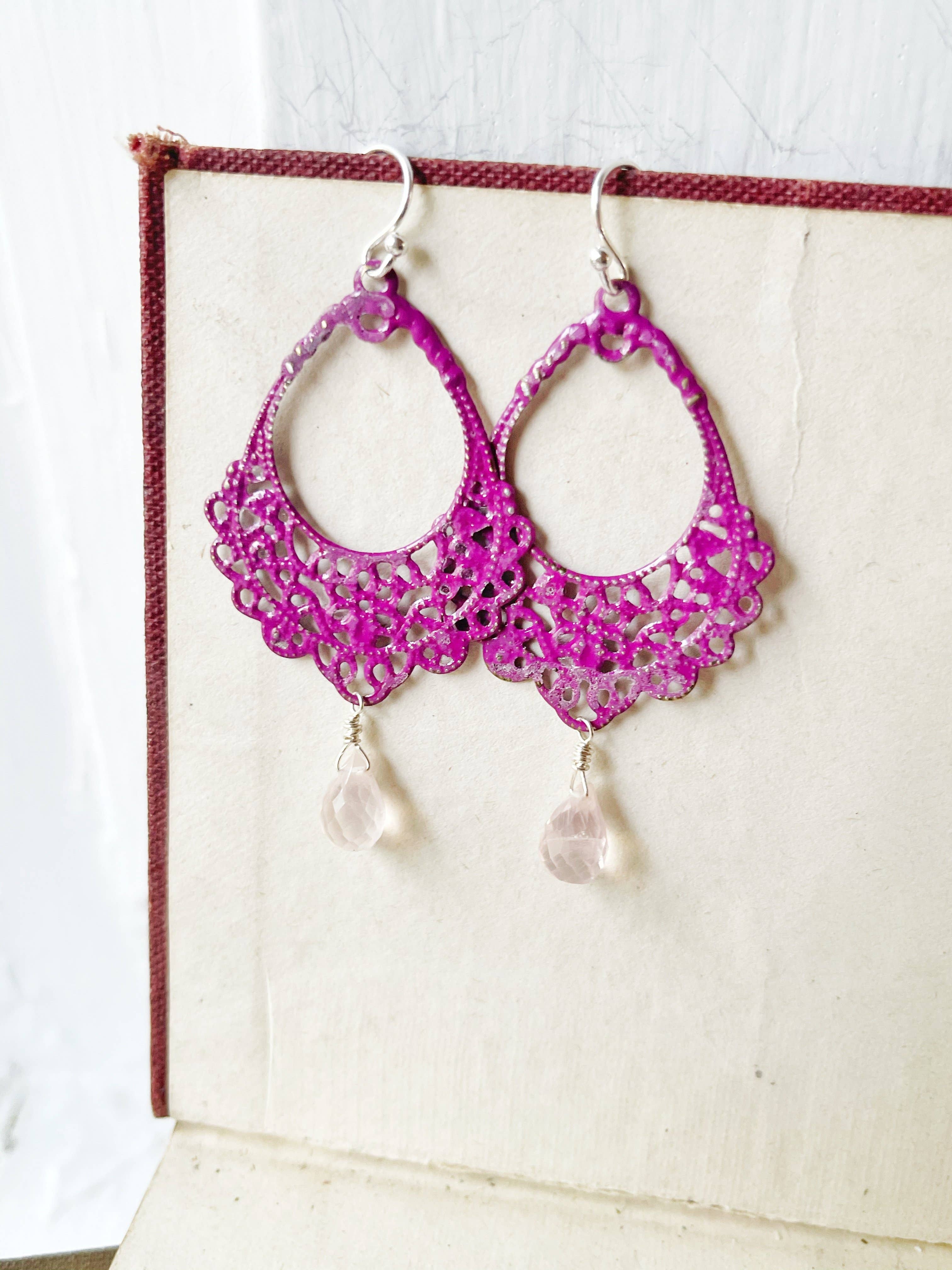 The real title of these earrings is: I Know Reading Isn't Your Strong Suit But Jesus Christ Read The Room Earrings These are hand painted over a lengthy process to create this gorgeous patina. We have several of these in stock, and each pair differs quite a bit from each other since no two patinas are alike. Some will have more green and some will be more copper. I wire wrapped beautiful faceted smoky topaz drops to the bottom. They hang a little over 2" long