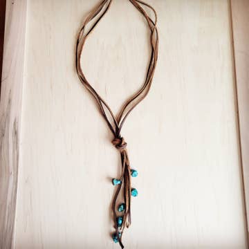 Lanyard knotted necklace with brass accents. A great option for those with metal sensitivities. Shown in Moss Cotton. Modeled in a different colorway for scale only. * 50" cording wrapped in yarn of your choice * lower center lanyard knot * brass end caps * one-size Options: * Yarn color (please refer to the last photo for color names) Handmade in Northeast Ohio by Sara McClelland. Made to order and ships in the timeframe currently noted.