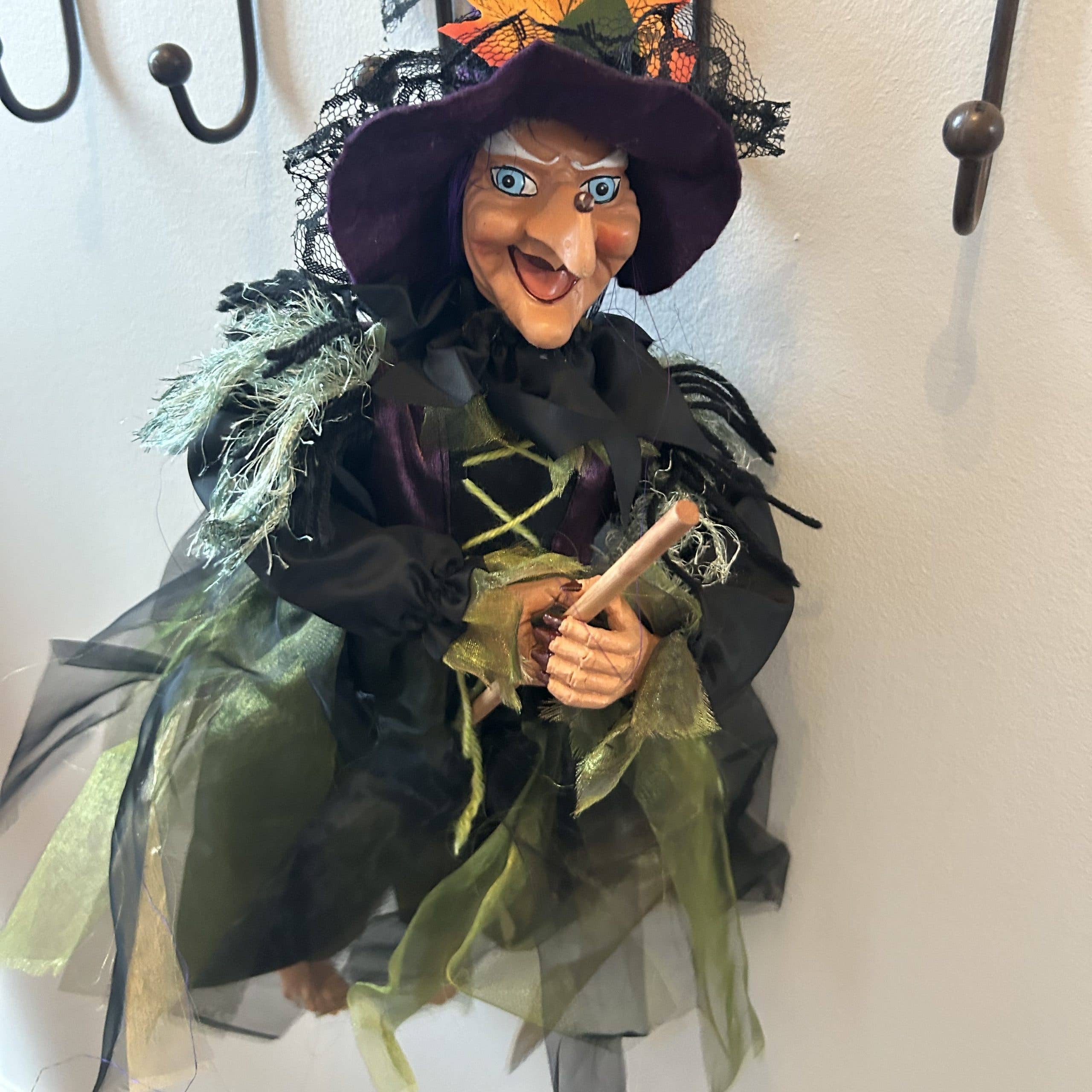 Kitchen Witch Doll Esmeralda purple Kitchen Witch Doll Esmeralda purple: A kitchen witch, sometimes called a cottage witch is a homemade poppet or doll resembling a stereotypical witch or crone displayed in residential kitchens as a good luck charm and to ward off bad spirits. History of Kitchen Witches There is some debate over where the kitchen witch originated, some claiming Scandinavia and others Germany, but consensus points to older Northern European customs, as it seems to have been more widespread earlier. The poppet is supposed to depict a "good” witch who inspires productivity and safety in a kitchen, but also counteracts any ill-will directed to the home. It is considered good luck to give a kitchen witch to a friend or family member. So that those unfamiliar with the kitchen witch can understand its meaning, sometimes a note will be hung around the witch's neck stating something similar to: The Legendary Secret of Goof-Proof Cooking: The Famous Kitchen Witch. Fo...