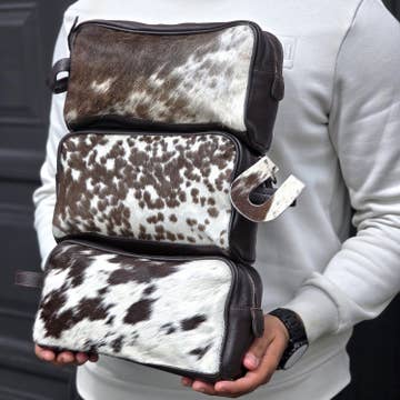 Boldly crafted, the Carry Case showcases a striking tooled leather and cowhide front with a handy small zipper pocket. Its solid leather back adds strength, while the padded interior and secure zipper closure protect your essentials. This case dares to combine rugged style with practical design for those who stand out. Each made with unique cowhides so no two alike.