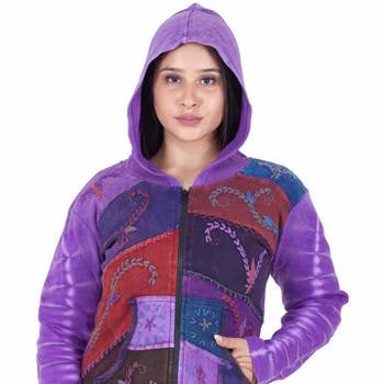 Discover the Bohemian aesthetic of Kathmandu Imports with our Tie-dye Long Jacket. This long-sleeve, hooded jacket is perfect for a night out and is suitable for fall/winter seasons. The Missy fit jacket is made of 100% cotton and is machine washable for easy care.