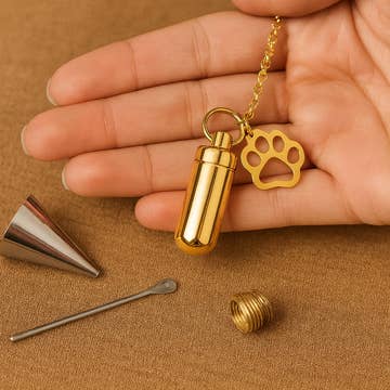 The "Meow" pet urn by Pulvis Art Urns is a charming and adorable ceramic tribute to your beloved cat, featuring a soft baby blue hue. With its cute design and gentle curves, it captures the essence of your pet's playful spirit. This handcrafted urn serves as a beautiful and lasting memorial, offering comfort and a loving way to keep your furry friend close. Perfect for honoring your cat with grace and warmth, the baby blue color adds an extra touch of serenity. - Bottom filled/ No bag needed - Suitable for outdoors and home - Ceramic & Gold Finish height 21 cm | 8.2 in width 11 cm | 4.3 in length 14 cm | 5.5 in capacity 0.8 L | 49 cu in weight 0.8 kg | 1.8 lbs. Suitable for the ashes of all domestic cats. Please note, that we recommend sealing our urns with adhesive(glue) suitable for ceramic surfaces. Import duties and local taxes are NOT included in the delivery and are due by the customer. HANDLING TIME : less than 1 business day.