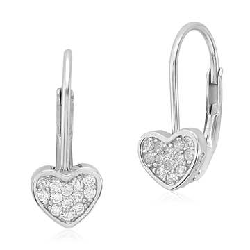 CZ Heart Solitaire 4mm Kids Earrings - Sterling Silver