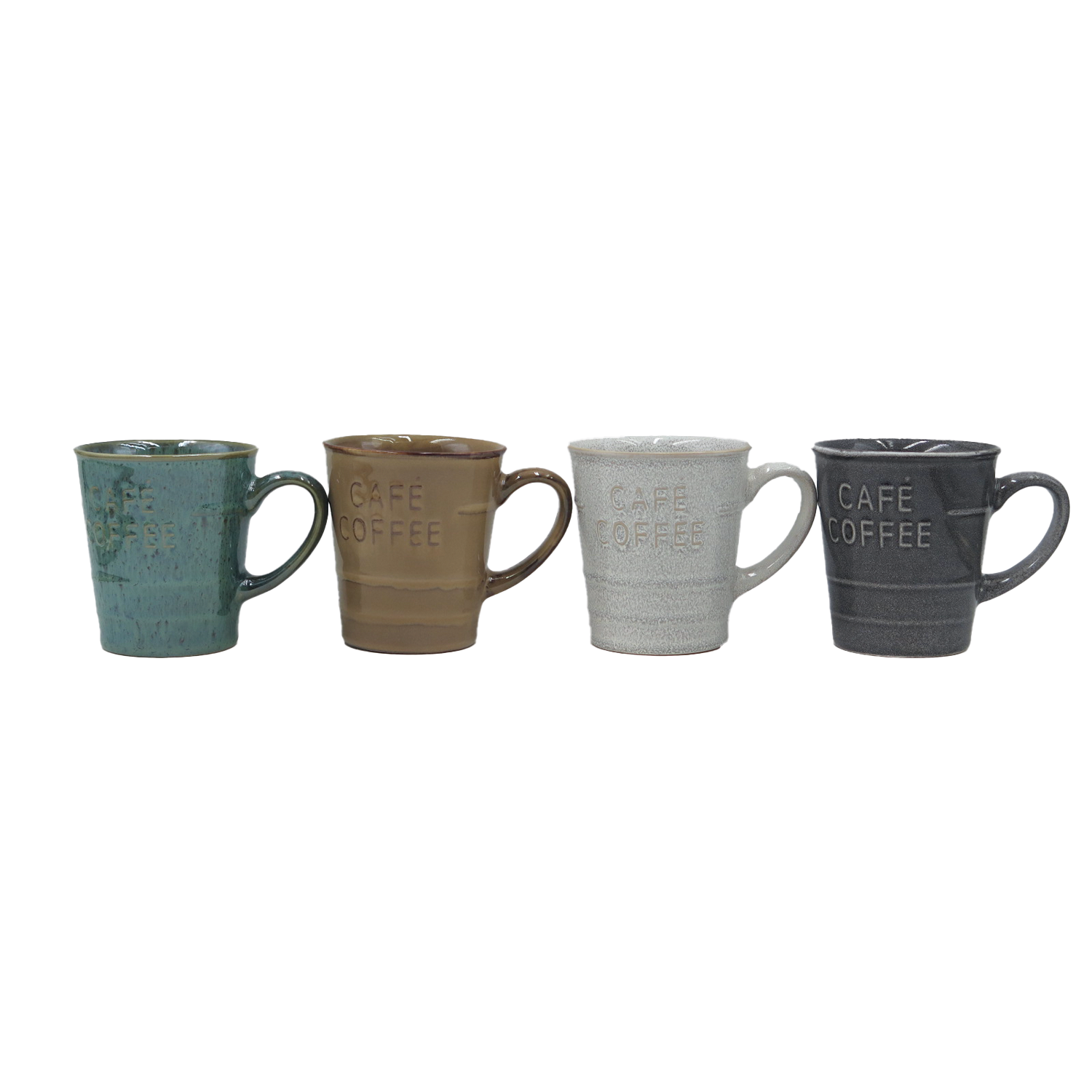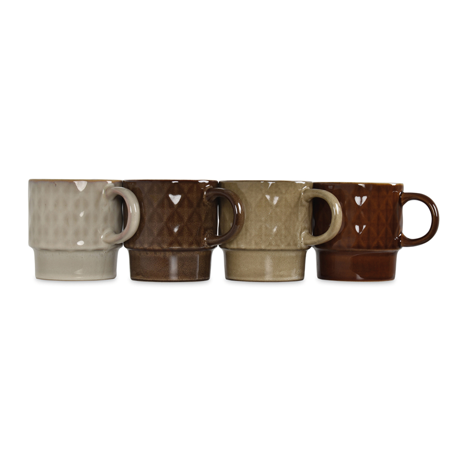 4 stoneware tea cups with patterns. Capacity: 440 ml Material: stoneware Diameter (cm): 8.5