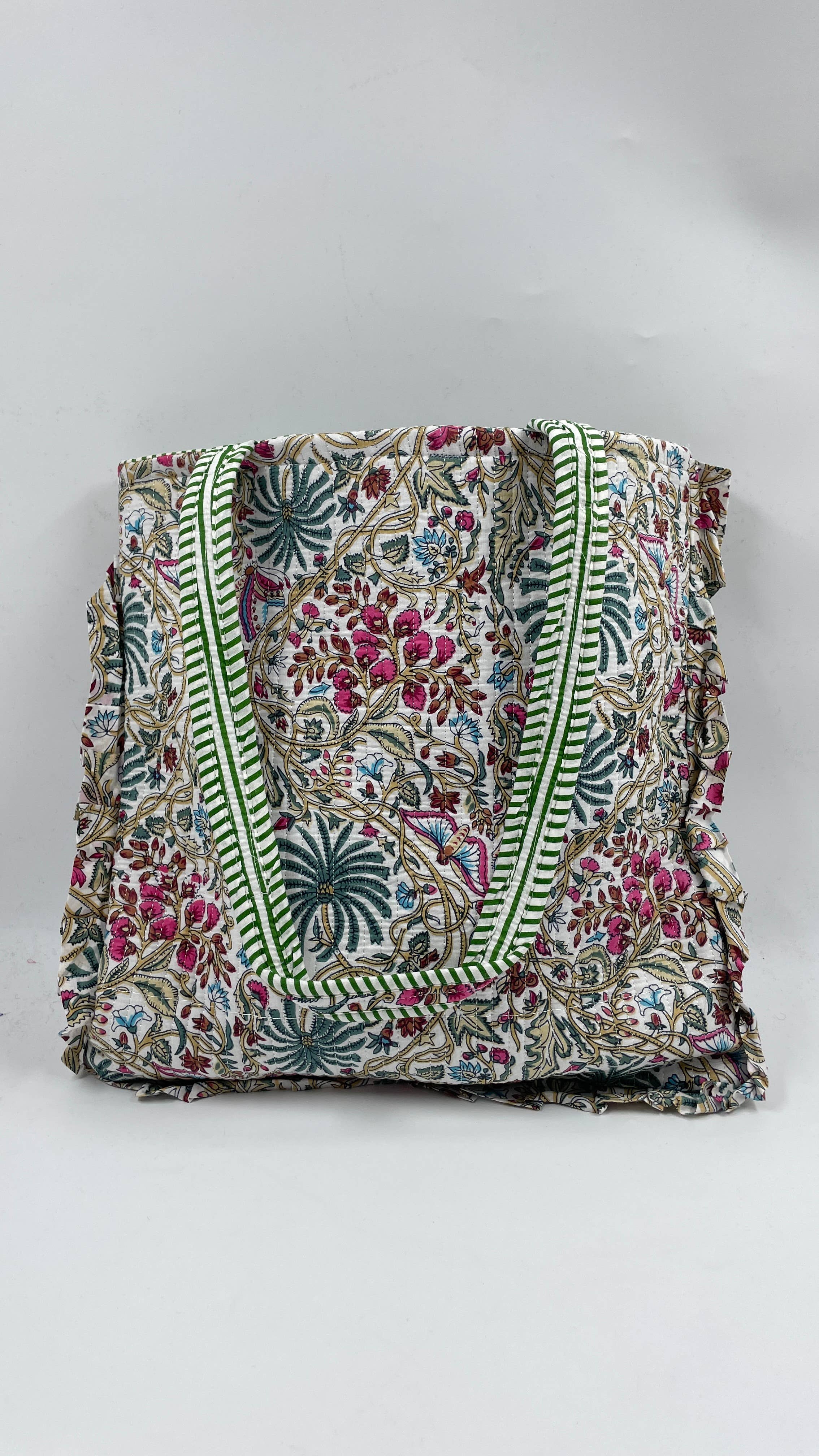 100% Cotton Kantha Quilted Boho Floral Reversible Tote Bag