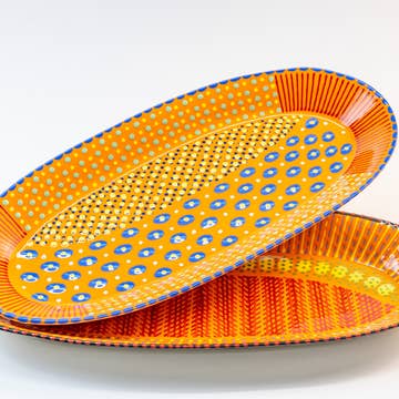 Serve up some fall with our Charming Pumpkin with Ginger Jars collection. These products are perfect for entertaining! Whether you’re hosting a cozy gathering or a festive dinner, our collection adds that special touch to your autumn celebrations. From elegant serveware to whimsical decor, make every moment unforgettable. Your customers will love these platters! They are made of ThermoSaf polymer. It is similar to melamine, but unlike melamine, is formaldehyde free and BPA free. The platters have a nice weight to them and are perfect for casual or formal dining. They are dishwasher safe, microwave safe, and even oven safe! - Microwave safe - Safe for use in Convection or Conventional ovens - Dishwasher-safe – any rack - Contains NO Melamine or formaldehyde BPA- free - FDA approved for food contact - platter: 10" x 14" x 7/8" deep x 3.0mm thick - 100% manufactured in the U.S.A. using U.S.A. components