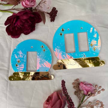 Light Switch Plate, Moroccan Inspired My Moroccan inspired light switch plate is made in the decoupage technique, with many layers of varnish, distressed with acrylic paint. Cleaning is easy, it can be wiped with a slightly damp cloth. The switches are available in various Sizes/Types, as double switch plate, Outlet Cover, Triple switch plate. The plate comes with 2 Brass screws. Measurement is 2 3/4" x 4.5"