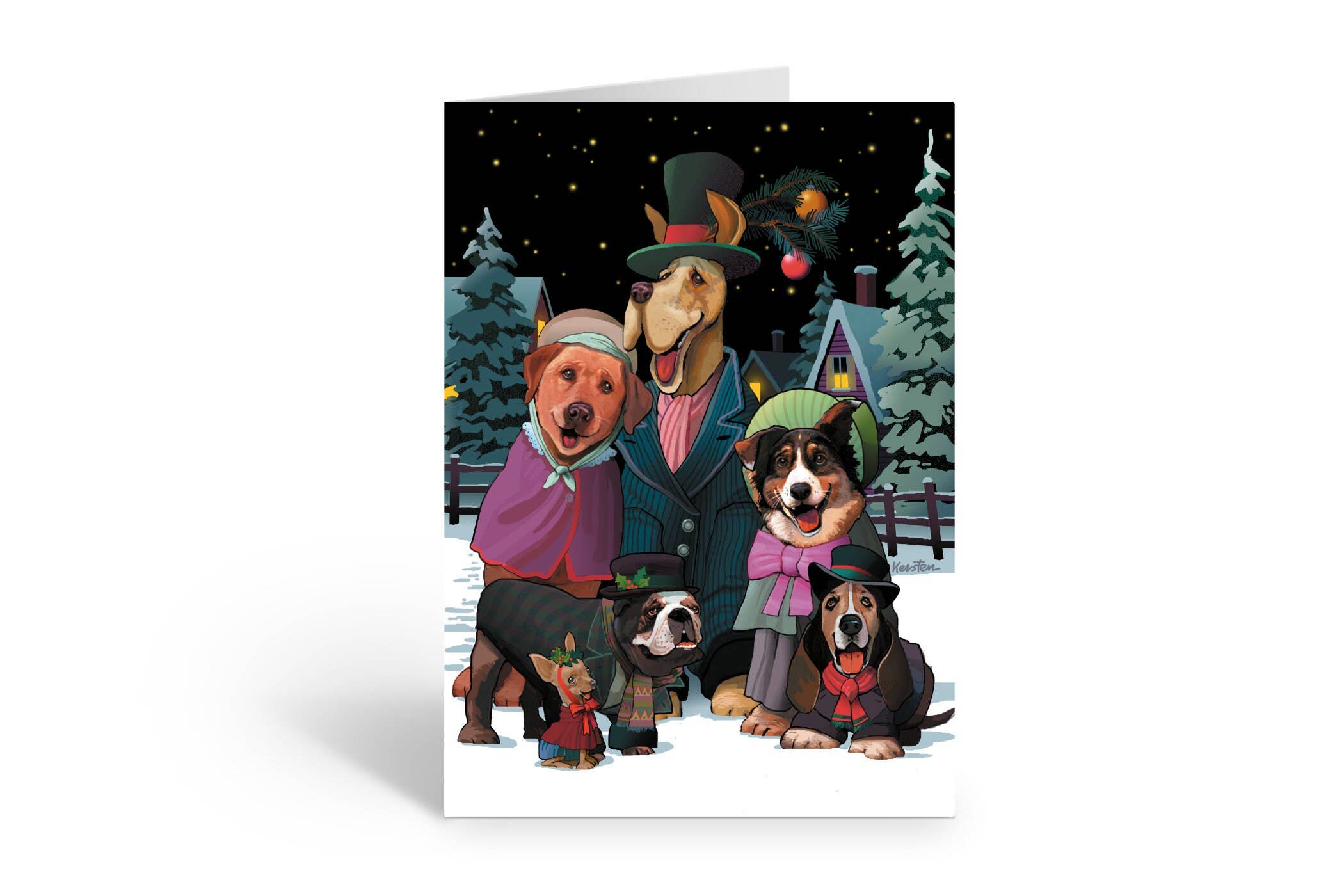 "and to all a good night" there is nothing like a roaring fire, a Christmas tree and some sleeping animals to bring on the holiday feels. A2 sized greeting card, blank inside for your own personal message. 100% recycled stock, made in the USA. Available as a single card or boxed set of 8 cards.