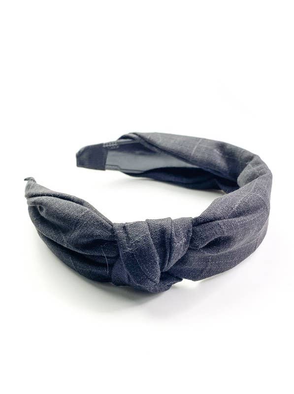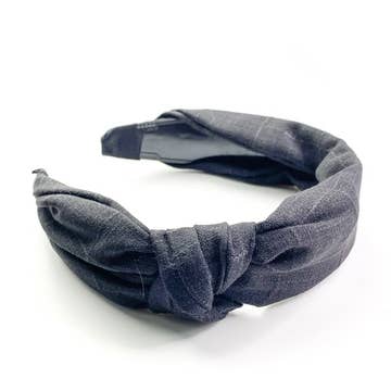 Wholesale Satin Gray Knotted Leah Headband with White Trim