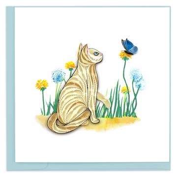 We all know this cat! A fun just-because card capturing the moment before disaster as kitty tests out the paw-sibilities of gravity. Risograph printed in black and federal blue. - A2 folded card, blank inside - White envelope - Eco-friendly, vegetable-based ink - Printed on 100% recycled, FSC-certified fiber-fleck cardstock - Commercially compostable sleeve