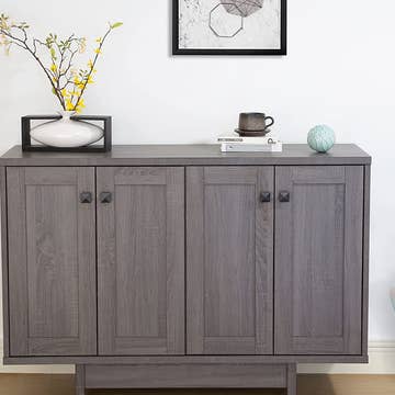 The Martha Stewart Allister Green's Cabinet offers a sleek modern storage update to your home. This Green's chest features a brown wood finish on the solid wood frame with a gold metal base, creating a rich contemporary look. The two doors are secured by magnetic catches and open to two shelves for plenty of storage space. Base assembly required, tools included. <br>• Solid wood frame • 2 shelves inside cabinet • Magnetic door catches • Gold metal base • Base assembly required, tools included<br>Specifications:<br>- Packing Time (days) : 2<br>- Delivery Time (days) : 6<br>- Box 1 Height : 24.00<br>- UPC : 086569388148<br>- Attribute Material : Material:Solid wood frame, MDF top and panel with solid wood veneer, metal base Frame Material: Solid wood Leg Material:metal Wood Finish:  Morrocco Metal Finish:Gold Metal Base<br>- Box 1 Depth : 43.00<br>- Attribute Dimensions (in) : 40"W x 16"D x 30"H<br>- Box 1 Width : 19.00<br>- Brand : Martha Stewart<br>- Box 1 Weight : 96.0