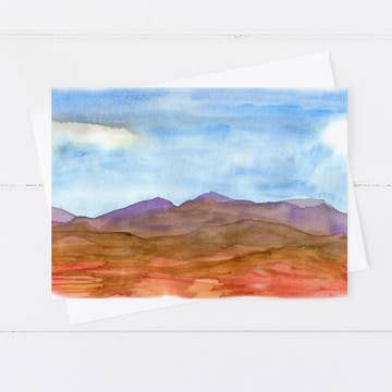 Send your thank-yous, hellos and miss yous in a beautiful way by including a miniature piece of art for the recipient to enjoy! Scene features Badlands National Park All 50 states available Originally hand-painted with watercolors Printed in the USA 6 pack A2 Envelopes included Extra Heavy-weight card stock Packaged in a clear cello sleeve and tied with blue & white twine Also available in art print and vinyl decal form