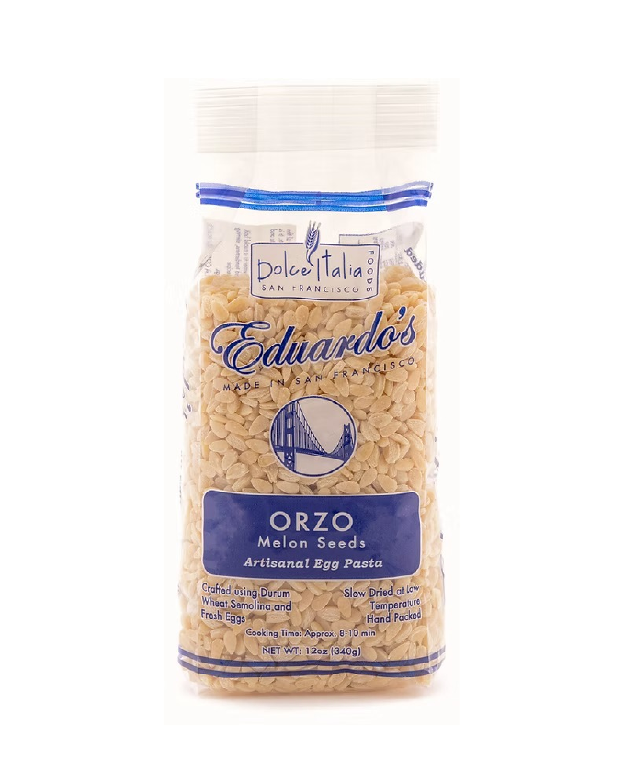Product made with Italian durum wheat semolina. The bronze die extrusion method gives the pasta excellent texture and roughness. Medium-sized spaghetti, with a cooking time of 8 minutes, perfect with fish-based sauces. Excellent when mixed in various quantities with "Squid Ink Spaghetti," as they have the same cooking times and produce a much more attractive and rich "seafood pasta."
