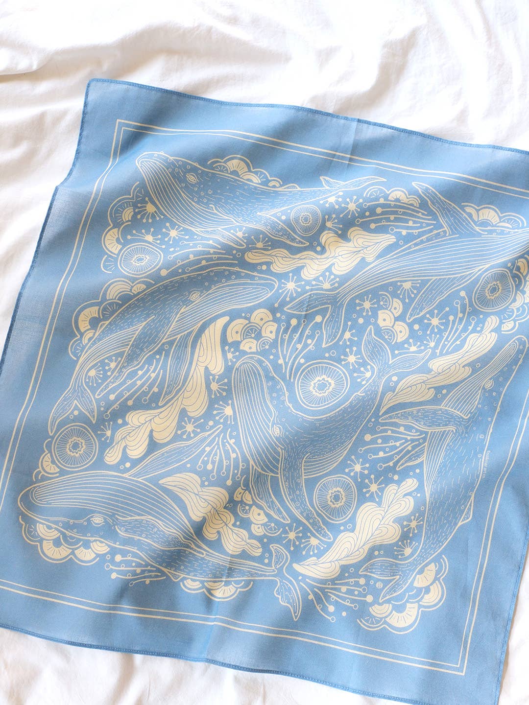 *Etsy's Pick* Bring the Art to yourself, your hair, pets, bags, or more! This 100% Soft cotton bandana scarf with a Humpback whale & the Ocean Art can be your scarf, hair accessories, a deco for your bags, a scarf for your pets, and even a tapestry. It is very soft, lightweight, and breathable to wear even in the Summer. Enjoy throughout the whole year! Illustrated Humpback Whale, and the image of the Ocean with waves, coral reef by S0l • Size: 22"x22" (approx.) • 100% soft, lightweight, breathable Cotton/ wearable throughout the whole year **This is not a typical bandana. lighter in weight compared to the typical bandanas, but has better quality cotton for the best hand feel. It feels more like a scarf or handkerchief.** • Machine Rolled hem • One-side printing • Care: Hand cold wash recommended, Do not bleach, Hang to dry