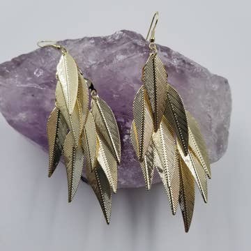 These tassel earrings are made from soft gold-color deerskin leather and beautiful pheasant feathers. 4" total length, including antique-brass earwires. Deerskin leather and pheasant feathers are sustainably sourced in the USA. Lightweight enough to wear every day. Ok to get wet. Available in 10 colors.