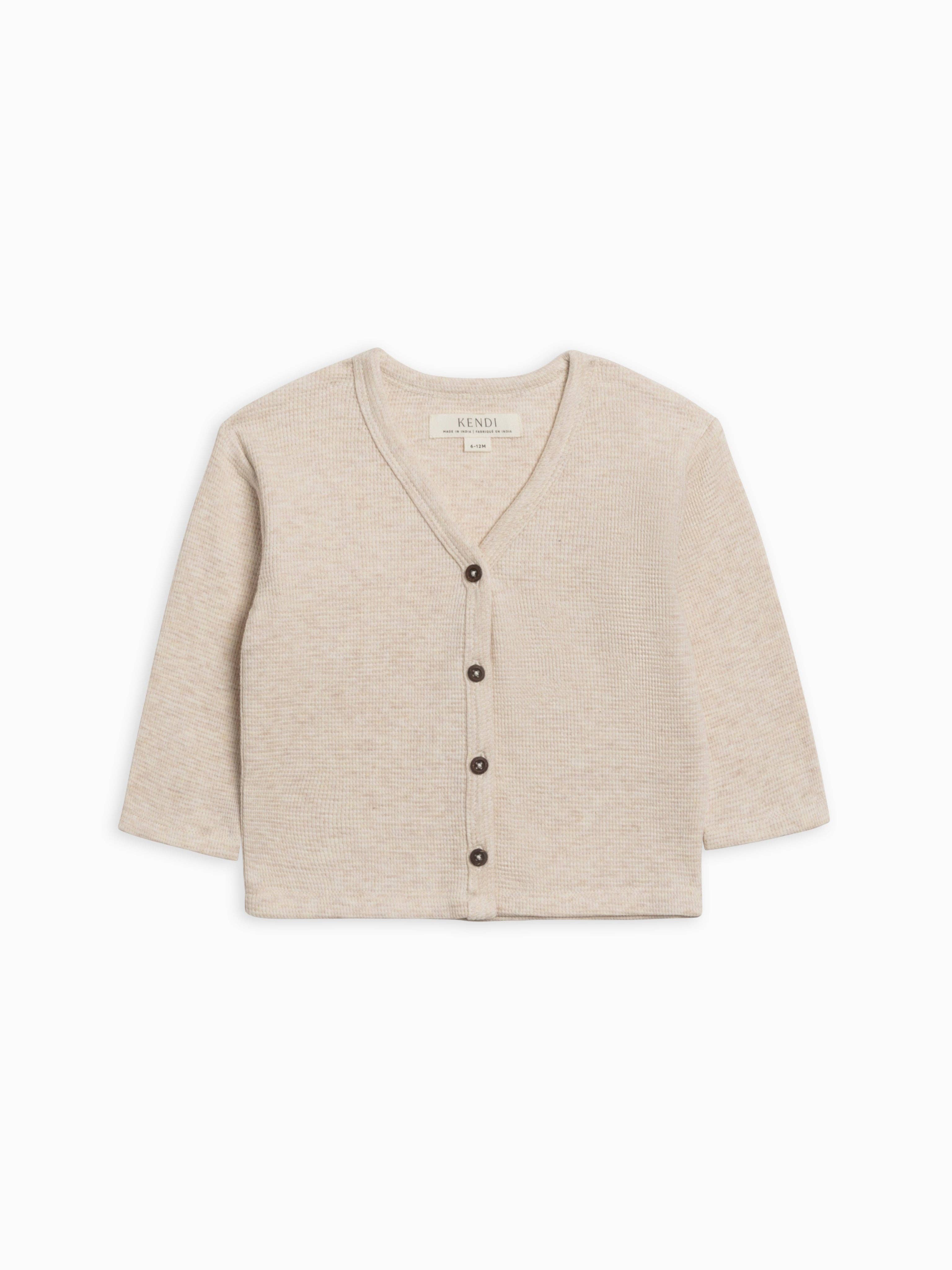100% organic cotton sweater knit button front cardigan for baby. Coconut shell buttons + 2 cute front pockets, girl colors have little bows. Classic and adorable design with meticulous detailing. Cashmere like soft hand-feel, lightweight cozy, comfy & all-season. Machine wash and dry, durable and long lasting. Eco-friendly, chemical free, non-toxic, pure, natural & organic baby clothes. Ethically produced in India, supporting better livelihoods for small grower farmers.