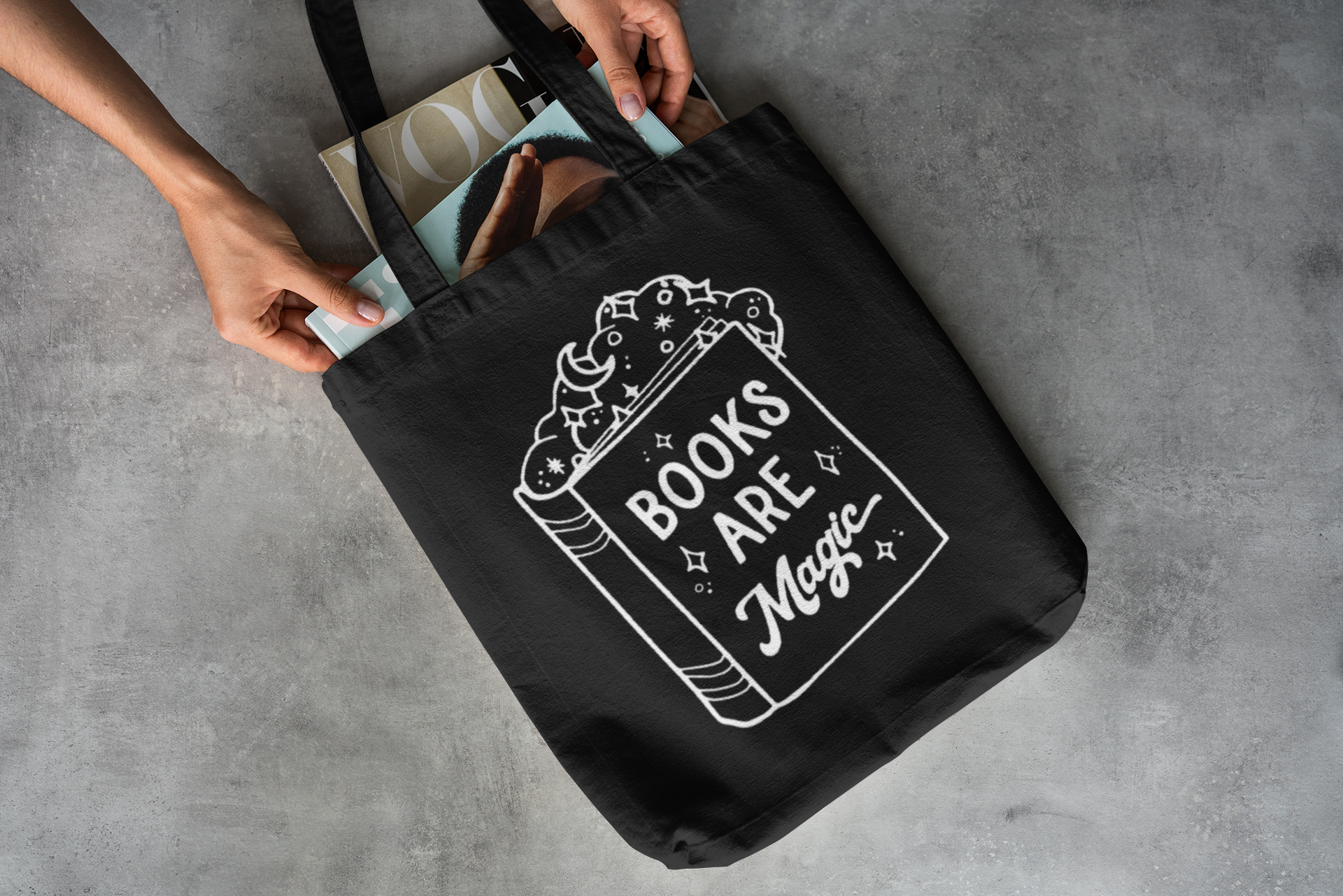 Our 16 x 15" Black Canvas Book Bags are made from 100% cotton and are 5 oz. These bags are perfect for carrying your favorite tomes and magical essentials. Each bag features hand-weeded and pressed HTV vinyl designs, showcasing gothic, witchy, and bookish themes that resonate with those who appreciate the eerie and mystical. Product Details: Material: 100% 5oz black cotton for a lightweight yet durable feel sourced from California, with finished product made by us in Canada. Dimensions: 16 x 15 inches, providing ample space for books, notebooks, and other essentials.