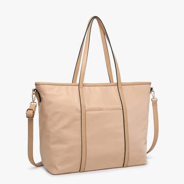 Tan/natural canvas bag, 15”H x 15”W x 5”D with 11” drop for the dark brown handles Open main compartment with small zippered inner flap pocket See main image for design. Image on bag is for visualization only, not actual image/words