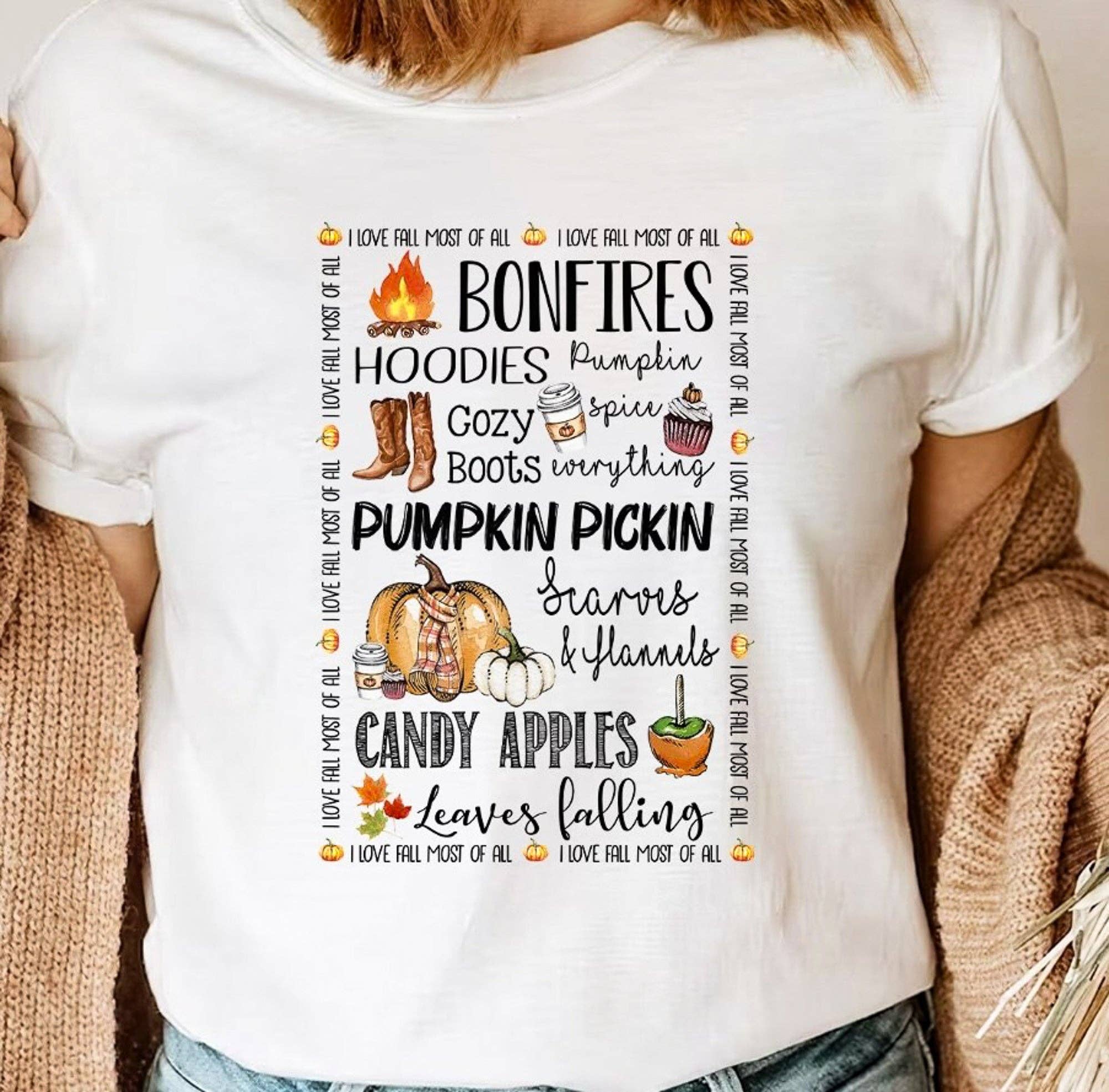 Charcoal graphic tee Cream "bonfires. flannels. s'mores. sweaters. campfires. pumpkins." Pre-pack 2-2-2-2(S-XL) Min. Qty. 8