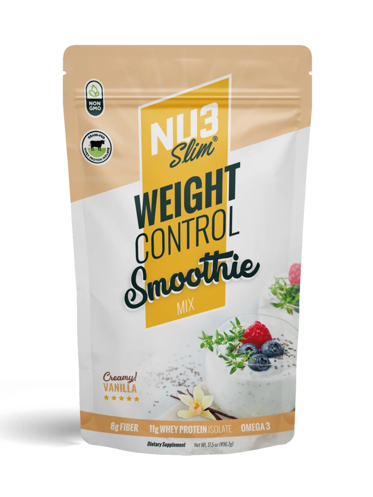 A combined case of NU3 Slim The Weight Control Smoothie big pouches of 17.8 oz: 4 Units of Yummy Strawberry 17.8 oz 4 Units of Creamy Vanilla 17.5 oz 4 Units of Delicious Chocolate 17.8 oz WHAT is NU3 Slim? A unique and delicious blend of protein, chia, flaxseed, oat brain, inulin, Omega 3 and more. Designed to make you feel full and satisfied, reducing the cravings and hunger that so often can undermine effective weight control. WHY NU3 Slim? It’s a delicious instant mix that delivers the protein you need to nourish your muscles along with high amounts of fiber (just one serving provides more than 1/3 of your daily fiber requirements!) which help rid your body of harmful toxins by keeping your digestion regular. Control your weight. Detoxify. Get the power of protein and fiber. For just 110 calories a day! 8g Dietary Fiber, 11g Whey Protein Isolate GRASS FED, Omega 3 & Prebiotics. Sugar Free! Soy Free! 0 Trans Fat
