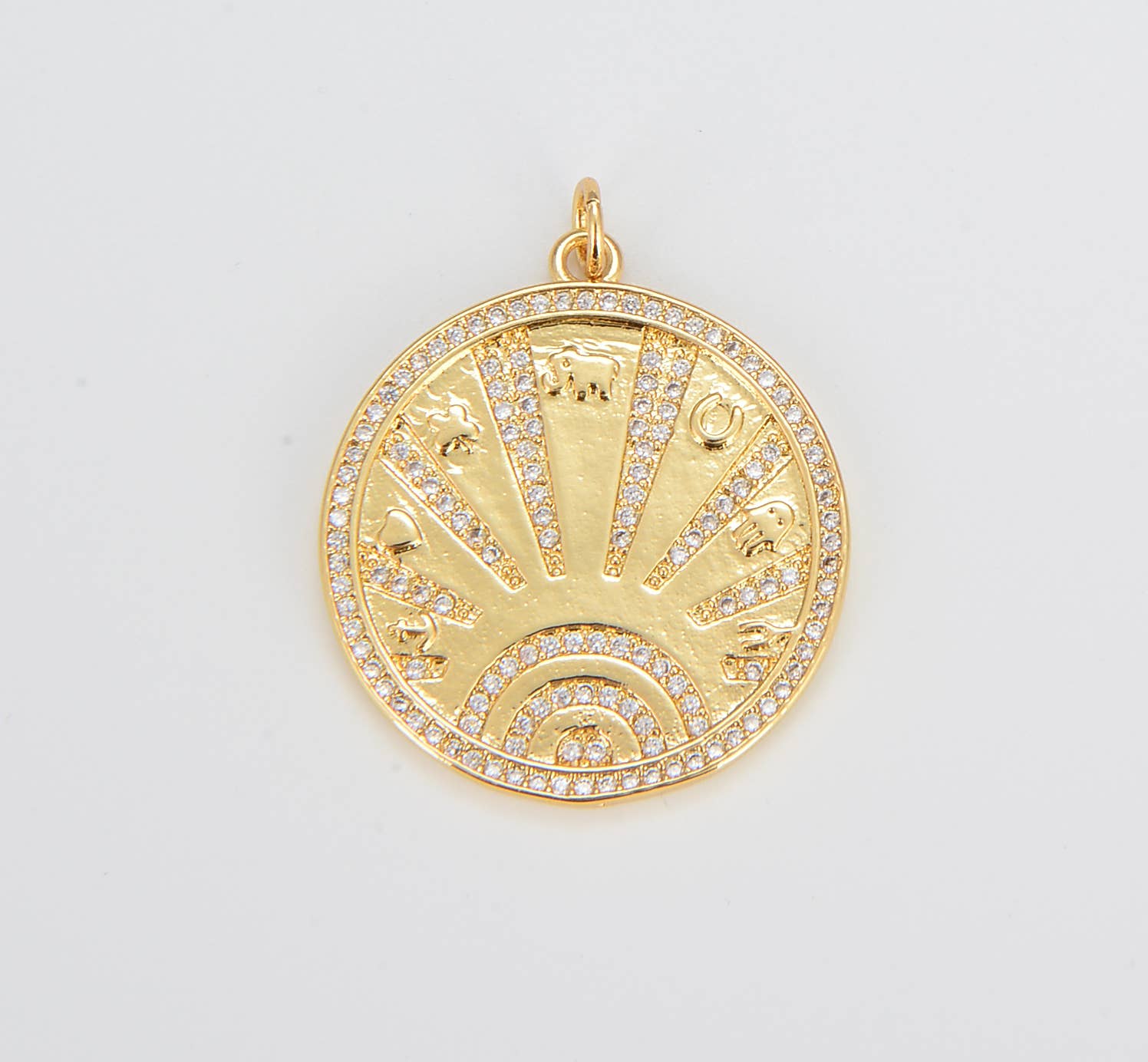 Bring radiant energy to your swimwear with our Golden Sun Bikini Charm. Featuring a detailed sunburst design with a warm golden finish, this charm is the perfect accent for sunny days and ocean vibes. Pair with our Bikini Charm Holders, available in small and large. Made in USA