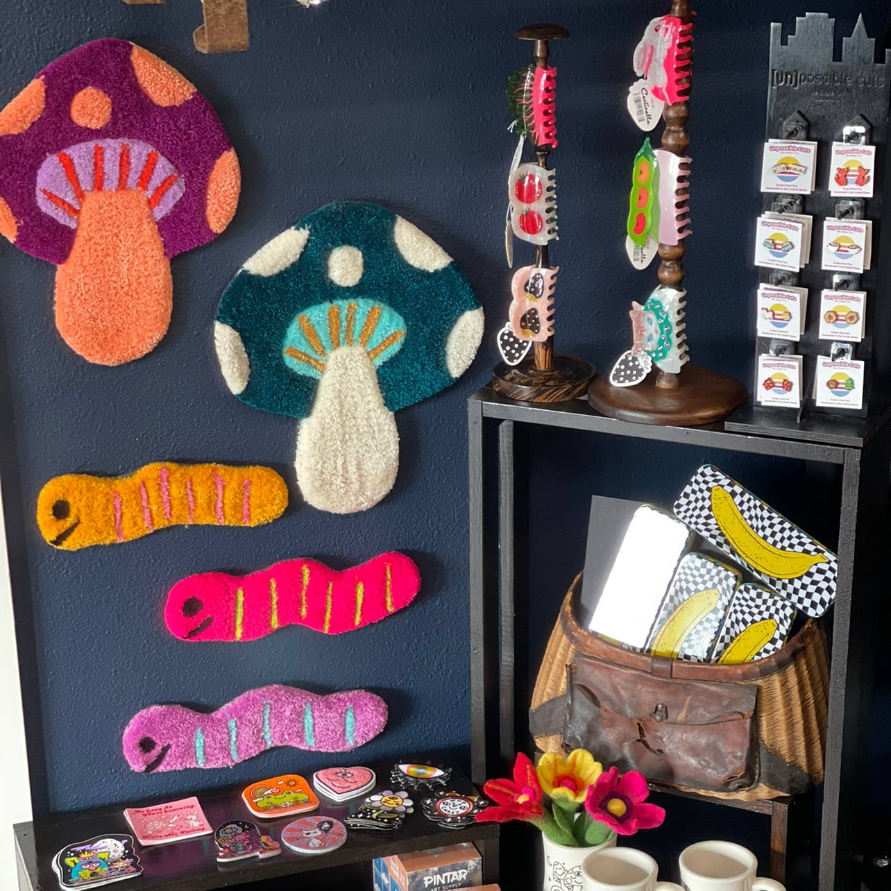 These mushrooms have been a huge hit! These look cute on their own, or clustered in groups. Each have a tag on back for easy hanging. Sizes all vary slightly, each is handmade by me!