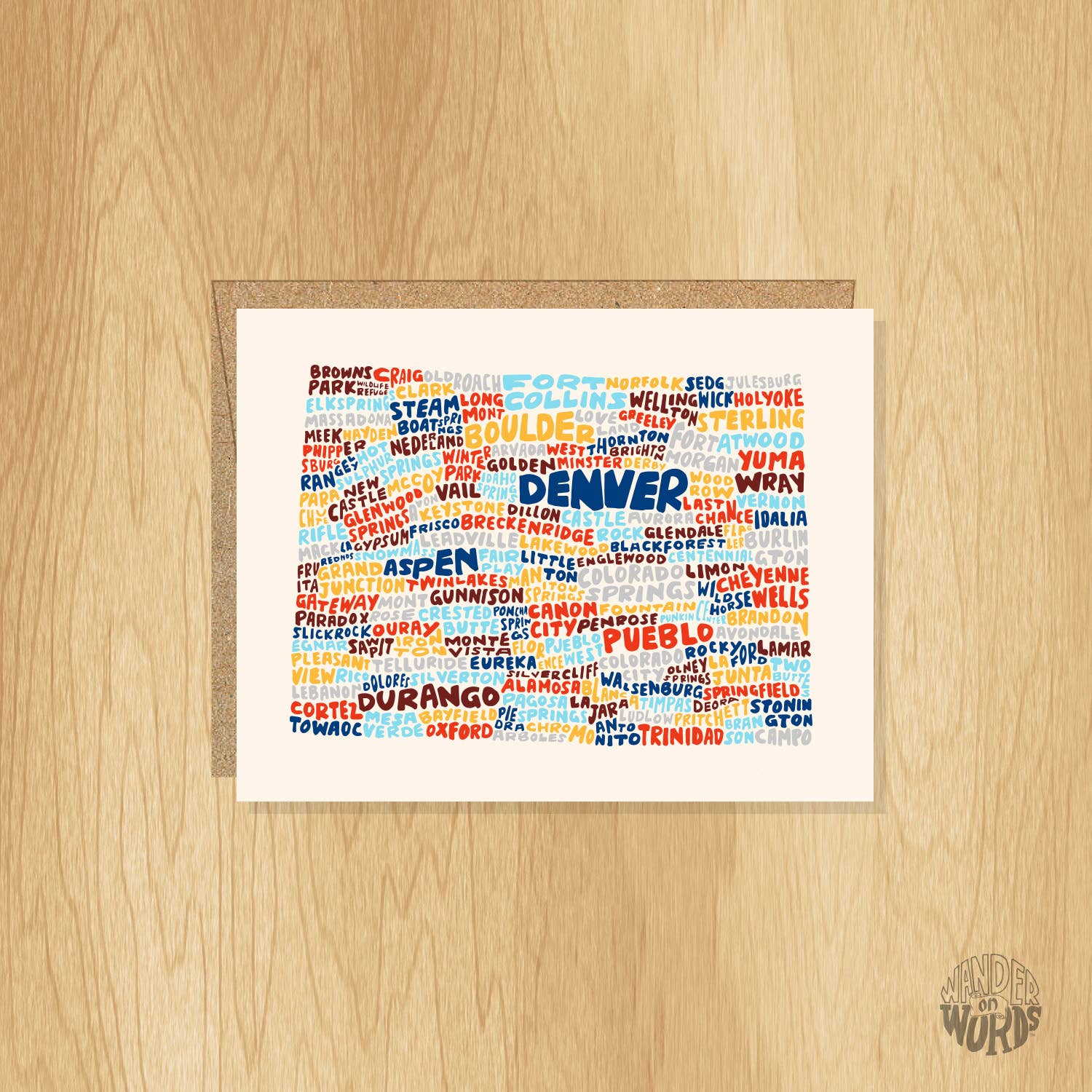 This Colorado card uses the Denver skyline and the Rocky Mountains to spell out the hand-lettered greeting - a must-have for gift shops, tourist hot spots, and anyone visiting the Mile High City. A2 card printed with rich, vibrant inks on thick, matte stock with a velvety soft-touch finish. Blank inside, comes with coordinating colored euro-flap envelope. About my greeting cards: - All my designs are hand-lettered and illustrated by me (no fonts or stock graphics, ever) - A2 cards measure 4.25x5.5 inches - Packaged in crystal clear protective sleeves that are commercially compostable - Designed and printed in Denver, CO - Blank inside
