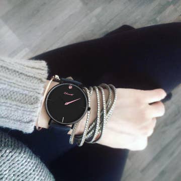 This vintage design watch features gold links and a minimalist circular dial, and a black strap. Not only is this a functional watch, but the cut glass and petite watch face also make it appear like a piece of jewelry. The design behind the LINK collection is inspired by the 1980s. If you love versatile watches, this one provides a classic look that is fitting for all settings, including special occasions. The wrist strap features a crocodile texture and has a luxurious feel to it, which instantly accentuates your feminine sense of style. SKU: WL008BK Case color: Gold Case size: 23mm Case thickness (including glass): 8mm Dial color: Champagne Gold Strap width: 12mm Adjustable length: 140mm-185mm (Min-Max) Strap material: Leather Strap color: Black Movement: Japanese Quartz Movement Water resistant: 3 ATM / Avoid all contact with water